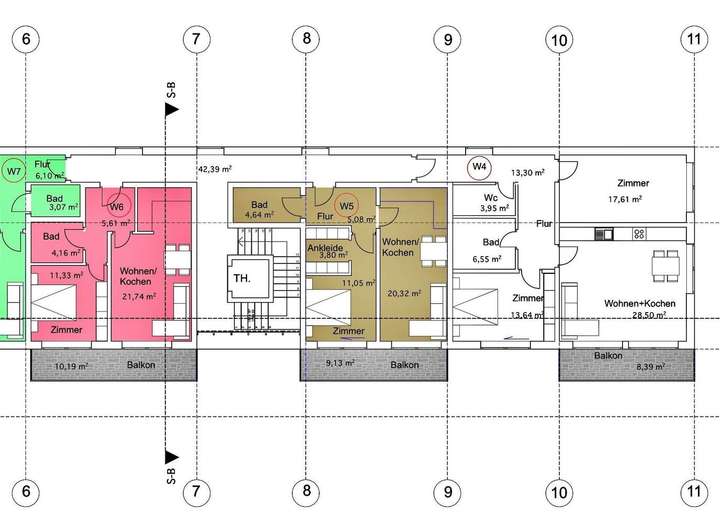 Wohnung 6 = 42,84 m2 + 5,09 m2 (10,19 m2) Balkon