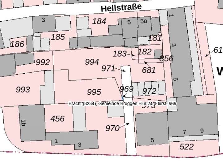 Das Grundstück liegt im Ortskern von Brüggen-Bracht, zwischen Hellstraße und Südwall.