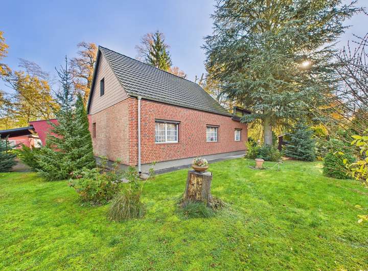 Dieses gepflegte Einfamilienhaus aus dem Jahr 1937 befindet sich in ruhiger und angenehm gewachsener Umgebung und bietet mit einer Wohnfläche von ca. 92 m² ideale Voraussetzungen für Paare oder kleine Familien, die Wert auf ein großzügiges Grundstück und vielseitige Nutzungsmöglichkeiten legen. Das Haus steht auf einem vollständig eingefriedeten Grundstück mit einer Fläche von etwa 842 m² und verfügt über liebevoll angelegte Außenflächen mit Zierpflanzen, einem Teich und einer gemütlichen Gartenlaube.