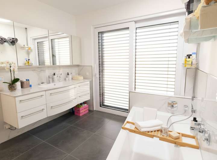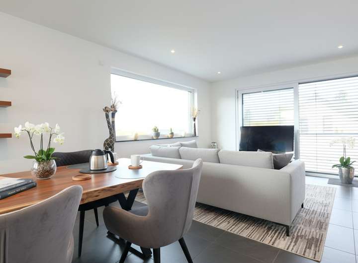 Das Haus überzeugt durch eine erstklassige technische Ausstattung: Elektrische Raffstores, hochwertige Sicherheitsfenster und -türen (S1-S3), Glasfaser- und Kabelanschluss sowie je einen Wallboxansc pro Wohnung für Elektromobilität setzen hohe Maßstäbe. In der Maisonettewohnung ist ein Kaminofenanschluss vorbereitet. Zahlreiche Steckdosen und Medienanschlüsse in allen Räumen bieten zeitgemäß maximale Flexibilität für Ihre individuellen Bedürfnisse.
