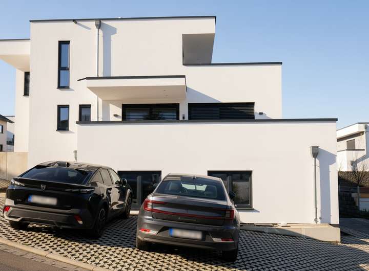 Die ca. 107 m² große Wohnung im Erdgeschoss besticht durch einen separaten Eingang, 4-5 Stellplätze und eine kleine überdachte Terrasse. Sie ist frisch fertiggestellt und bislang unbewohnt – der perfekte Start für Ihr neues Familienleben oder barrierefreie Wohnbedarfe.