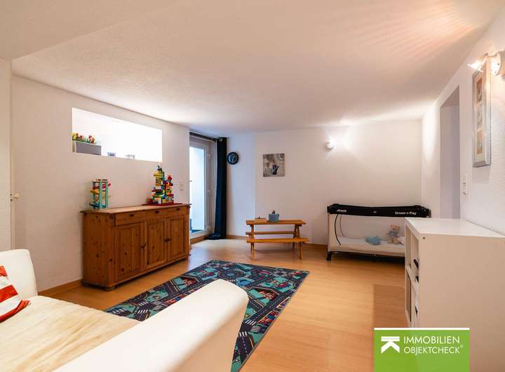 Der alteingewachsene Garten hat eine optimale Größe, bietet viel Privatsphäre und ausreichend Fläche für diverse Nutzungsmöglichkeiten. Ein Gemüsebeet, ein Spielbereich für Kinder mit Schaukel sowie ein Grillplatz finden hier problemlos Platz. Die große Terrasse wurde 2010 saniert.