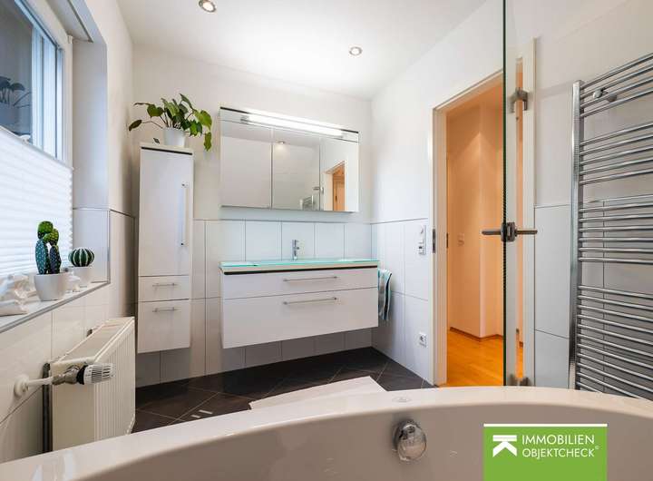 Das Haus sowie die Doppelgarage befinden sich in einem sehr gepflegten Zustand. Die Eigentümer haben über die Jahre sehr großen Wert auf Werterhalt und Pflege ihrer Immobilie gelegt. Zudem ist das Objekt teilweise modernisiert und saniert worden. Stellvertretend hierfür stehen die Elektroinstallation aus dem Jahr 1992, die doppeltverglasten Kunststofffenster und das Gäste-WC aus 2000, die beiden Bäder im Obergeschoss aus 2007, die Terrassensanierung aus 2023, Markise aus 2017 und die Gas-Brennwerttherme mit Warmwasserspeicher aus 2015, usw.. Die Gewerke sind dem Baujahr entsprechend in einwandfreiem und gepflegtem Zustand. Je nach Ihren individuellen Vorstellungen und Bedürfnissen ist das Objekt bezugsfertig.
