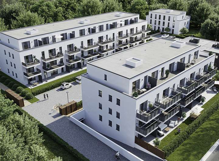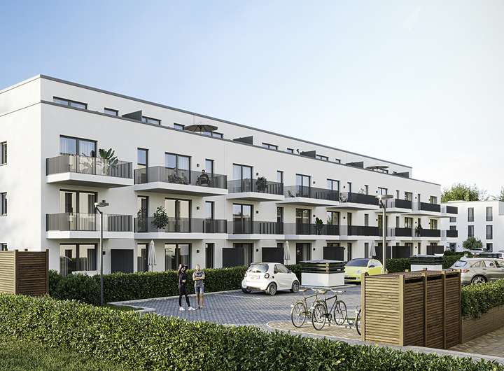 Dank KfW-55-Effizienz, moderner Lüftung und optimalem Schallschutz genießen Sie höchsten Wohnkomfort. Außen- und Tiefgaragenstellplätze sorgen für bequeme Mobilität. Ausreichend Fahrradabstellmöglichkeiten befinden sich im Innenhof.