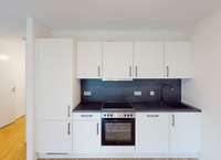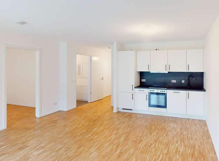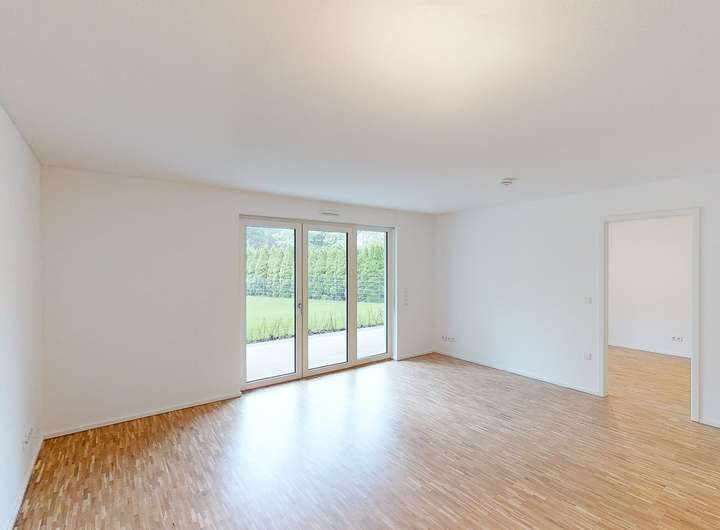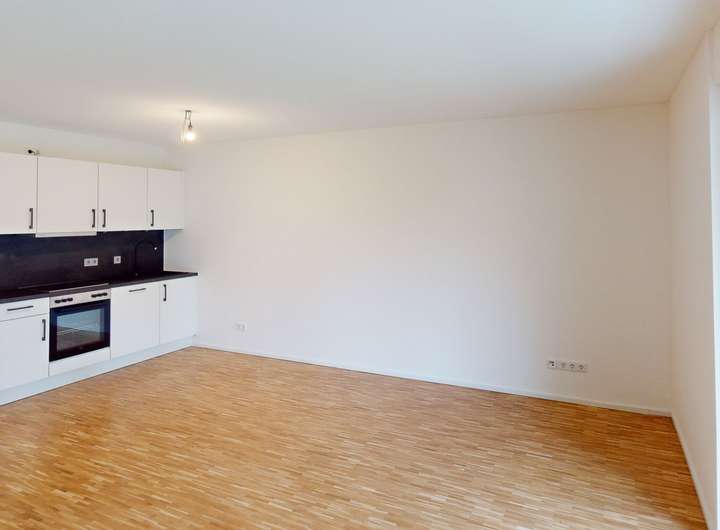 Diese gut geschnittene 2-Zimmer-Wohnung bietet einen offenen Wohn-/Essbereich mit moderner Küche, ein gemütliches Schlafzimmer sowie einen praktischen Abstellraum. Durch die große Terrassentür wirkt der Wohnraum hell und einladend. Die große Terrasse mit Blick ins Grüne und das hochwertige Bad runden das komfortable Wohnangebot ab.