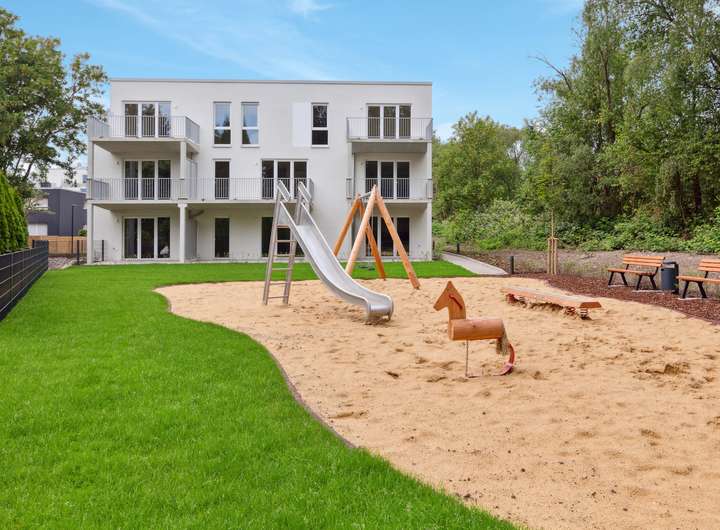 Klare Grundrisse und durchdachte Raumnutzungskonzepte sorgen neben dem offenen Schnitt der Wohnzimmer, den bodentiefen Fenstern, einer klassischen Wand- und Bodengestaltung und dem zeitlosen Design im Bad für viel Spielraum und individueller Gestaltungsfreiheit der Räume.