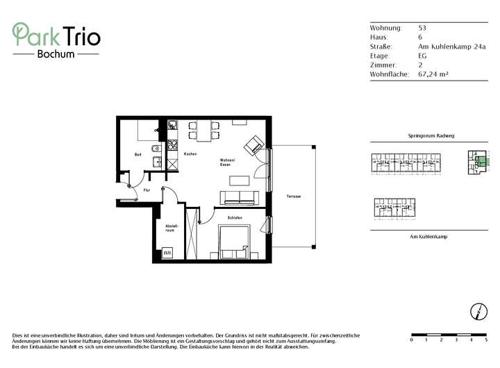 Bei den Außenfotos handelt es sich teilweise um unverbindliche Visualisierungen des Projekts. Bitte beachten Sie, dass die Innenfotos aus einer schnittgleichen Wohnung im gleichen Objekt stammen. Die genaue Etage und Grundriss entnehmen Sie bitte dem beigefügten Plan. Gerne können Sie sich im Zuge einer Besichtigung selbst vom PARK TRIO überzeugen. Wir freuen uns auf Sie!