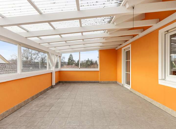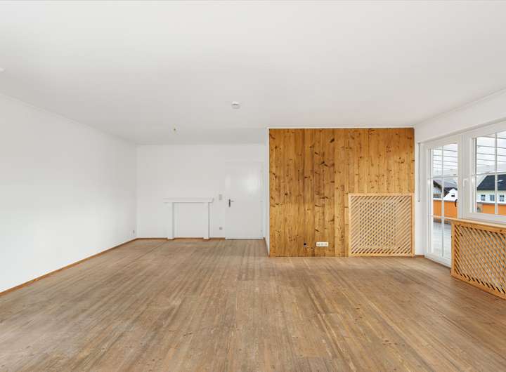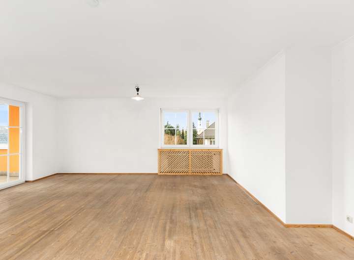 Ein besonderes Highlight ist der großzügige Balkon in Südausrichtung mit rund 30m², der viel Raum für gemütliche Stunden im Freien bietet. Dieser ist über den Wohnbereich begehbar. Der großzügige Wohn-/ Essbereich bietet genügend Platz für eine Einbauküche sowie Wohnbereich und Esstisch. Für die Waschmaschine steht ein separater Waschraum im Erdgeschoss zur Verfügung.