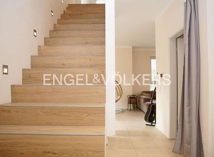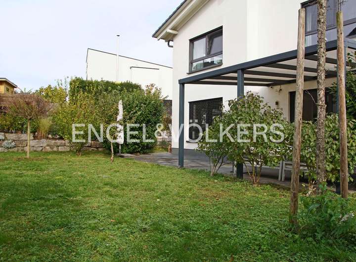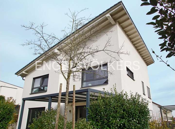Dieses freistehende Einfamilienhaus aus dem Jahr 2015 überzeugt durch seine moderne Architektur, die großzügige Raumaufteilung und die hervorragende Lage im beliebten Neubaugebiet Eckertsberg in Dielheim. Auf einer Wohnfläche von ca. 180 m² bietet es höchsten Wohnkomfort für Familien, die Wert auf ein offenes und helles Wohnambiente legen. Nur wenige Meter trennen das Haus von Feldern, Wiesen und Wäldern, die zu Spaziergängen und Freizeitaktivitäten in der Natur einladen, während das Zentrum von Dielheim mit allen Geschäften für den täglichen Bedarf bequem zu Fuß erreichbar ist. Das Haus verfügt über zwei Vollgeschosse mit insgesamt sechs Zimmern, davon vier als Schlafräume nutzbar. Im Erdgeschoss öffnet sich ein großzügiger Wohn- und Essbereich mit direktem Zugang zur nach Südwesten ausgerichteten Hauptterrasse sowie zu einer zweiten, kleineren Terrasse, die sich ideal als Frühstücksterrasse eignet. Der angrenzende Garten bietet ausreichend Platz für gesellige Stunden mit Familie und Freunden oder zum Spielen für Kinder. Die separate Küche ist mit einer modernen Einbauküche ausgestattet und führt ebenfalls direkt auf die Frühstücksterrasse. Ergänzt wird das Erdgeschoss durch ein Arbeits- bzw. Gästezimmer sowie ein Gäste-WC. Über eine massive Treppe gelangt man ins Obergeschoss, in dem sich drei Schlafzimmer und zwei Bäder befinden. Das größere Badezimmer verfügt über eine Badewanne und eine separate Dusche, während das en Suite Bad mit einer Dusche ausgestattet ist. Im gesamten Haus sind hochwertige Fliesen verlegt, im Obergeschoss in ansprechender Holzoptik, was dem Haus eine warme und zugleich moderne Atmosphäre verleiht. Beheizt wird die Immobilie über eine moderne und besonders effiziente Wärmepumpe, die in Kombination mit der Fußbodenheizung für eine angenehme und gleichmäßige Wärme sorgt. Für Fahrzeuge stehen eine Einzelgarage sowie drei weitere Stellplätze direkt am Haus zur Verfügung. Das Grundstück liegt ruhig am Rand des Neubaugebiets, wodurch sowohl naturnahe Erholung als auch die Nähe zu Kindergarten, Schulen, Einkaufsmöglichkeiten und Verkehrsanbindungen gegeben ist. Über die nahegelegenen Autobahnen A5 und A6 sowie die Bundesstraße B39 sind Heidelberg, Wiesloch und Walldorf schnell erreichbar. Insgesamt präsentiert sich dieses Einfamilienhaus als modernes, energieeffizientes und familienfreundliches Zuhause mit durchdachter Raumgestaltung, sonnigen Außenbereichen und einer Lage, die Naturverbundenheit und Alltagstauglichkeit perfekt vereint – ein Ort, an dem Wohnen zur Lebensqualität wird.