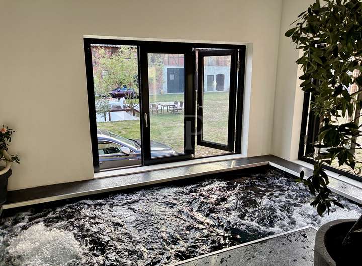 - Neue Aluminium-Fenster und -Türen mit Mehrfachverglasung in RAL 9005, schwarz wurden verbaut.
