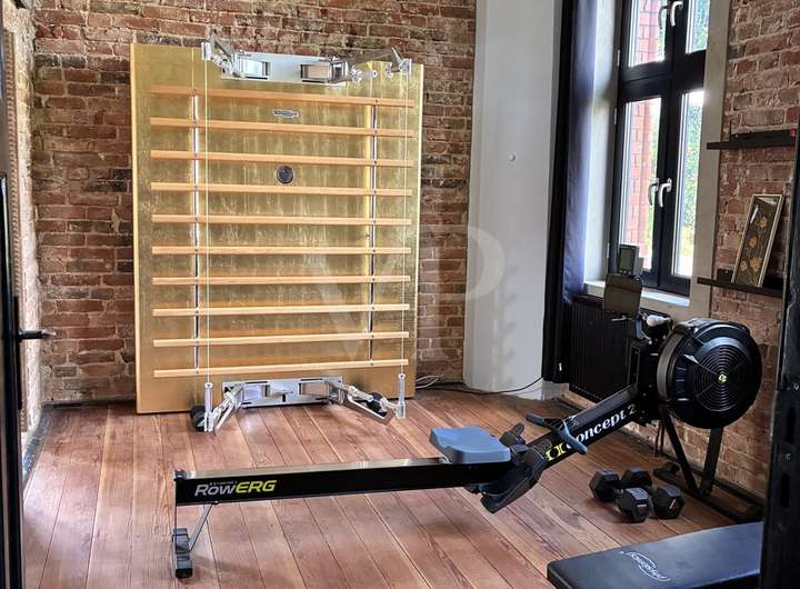 Ein klares Design im Industrial-Look zieht sich durch das ganze Haus. Die Farben Grau und Schwarz ergeben mit dem betonfarbenen Boden, den ziegeloffenen Wänden, dem freien Balkenwerk und den Eisenträgern eine starke Symbiose. Im Erdgeschoss gleich neben dem Eingang links befindet sich der von einem Klimatechniker und Architekten entworfene "Baumraum" (aktuell wächst dort gerade eine Palme), der sich bis ins Dach auf 7,5 m erstreckt. Dieser Lichthof besteht aus Arbeitszimmer, Ess- und und Wohnzimmer. Ein luftführender Kamin mit großen Glasscheiben sorgt als Mittelpunkt des Wohnbereichs für behagliche Wärme in der kühleren Jahreszeit. Vom Wohnzimmer aus hat man Zugang zu dem 10 m³ großen beheizten Indoor-Whirlpool mit Profi-Lufsprudelplatten und TV. Im Erdgeschoss befindet sich neben dem großzügigen Eingangsbereich die große Küche mit Bar und kleiner Aussenterrasse, ein Hauswirtschaftsraum für Trockner und Waschmaschine, ein Badezimmer mit Dusche, der Fitnessraum und ein Ankleidezimmer.