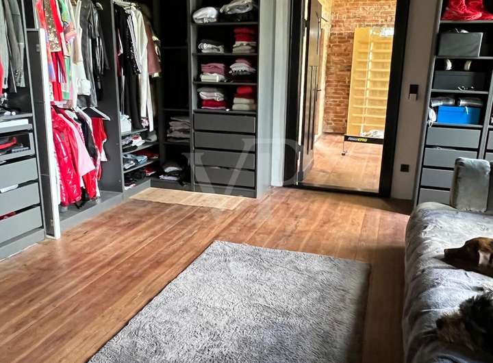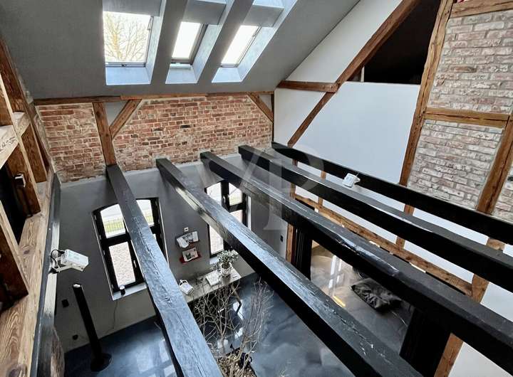 Das Obergeschoss ist zweigeteilt und durch eine Art Brücke/Steg miteinander verbunden. Auf der einen Seite befindet sich das Elternschlafzimmer mit einem en Suite Badezimmer mit freistehender Badewanne und einem Ankleidezimmer. Auf der anderen Seite ist der Kindertrakt mit zwei bzw. drei Schlafzimmern , die jeweils zweigeschosssig und über ein en Suite Badezimmer verfügen. In der Mitte der beiden Trakte befindet sich das große Spielzimmer, das natürlich auch anders genutzt werden kann.