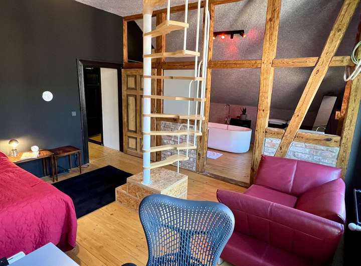 - Jeder Wohnraum und auch manche Badezimmer verfügen über einen funktionierenden und abgenommenen Schornsteinanschluss, sodass Kaminöfen aufstellbar sind.