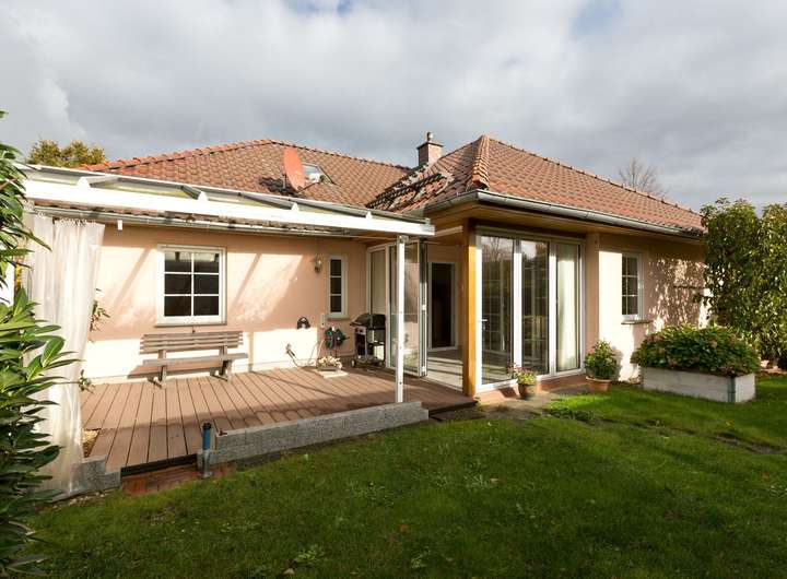 Genießen Sie sonnige Stunden im verglasten Wintergarten oder entspannen Sie sich beim Sonnenuntergang auf der Terrasse. Erfreuen Sie sich am pflegeleichten Garten mit einem Gewächshaus. Die elektrischen Rollläden sorgen für eine angenehme Atmosphäre und bieten Ihnen den nötigen Schutz.