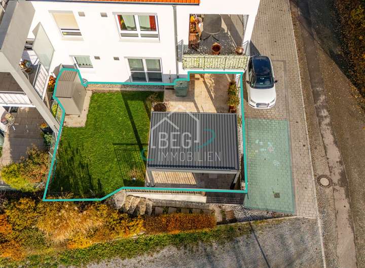 Die barrierearme und ebenerdige Gestaltung sorgt für höchsten Wohnkomfort und macht die Wohnung besonders alltagstauglich. Zwei praktische Außenstellplätze direkt am Haus bieten bequemes Parken, während ein Gerätehaus im Garten zusätzlichen Stauraum schafft.