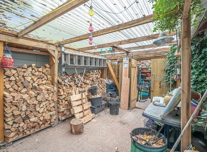 Abgerundet wird das Angebot durch ein massives Nebengebäude mit Waschküche, Werkstatt sowie einer älteren Sauna. Weitere Abstellmöglichkeiten für Fahrräder, Kaminholz und Gartengeräte finden sich unter einem Unterstand.