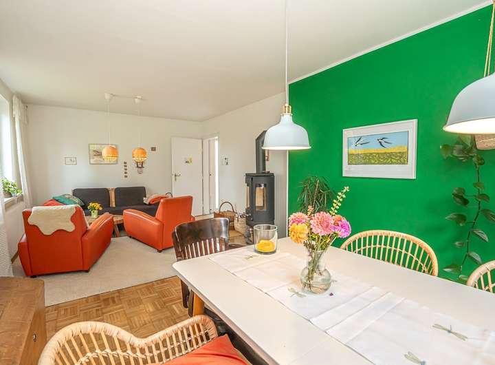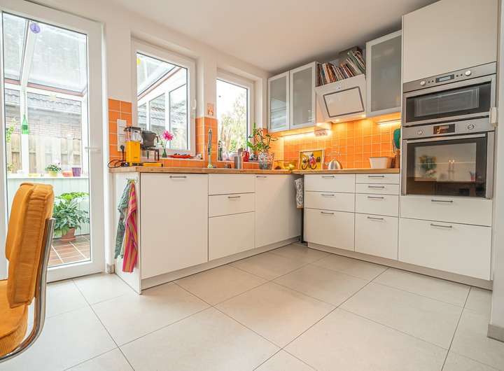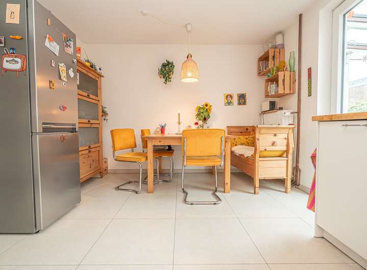Ergänzt wird das Raumangebot durch Teppich-, Fliesen-, Laminat- und Korkböden. Ein Kaminofen sorgt für zusätzliche Behaglichkeit an kühleren Tagen. Zwei Einbauküchen aus 2018 bzw. 2020 stehen zur Verfügung, ebenso wie eine Terrasse und ein Balkon – ideal für entspannte Stunden im Freien. Das Balkonkraftwerk unterstützt zudem eine nachhaltige Energieversorgung. Ein Glasfaseranschluss ist ebenfalls vorhanden.