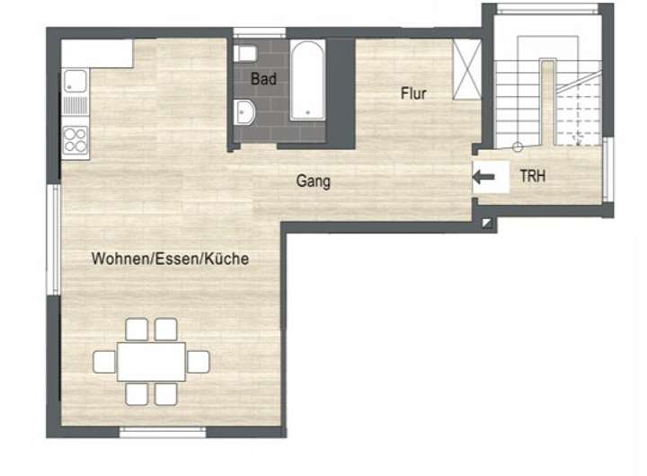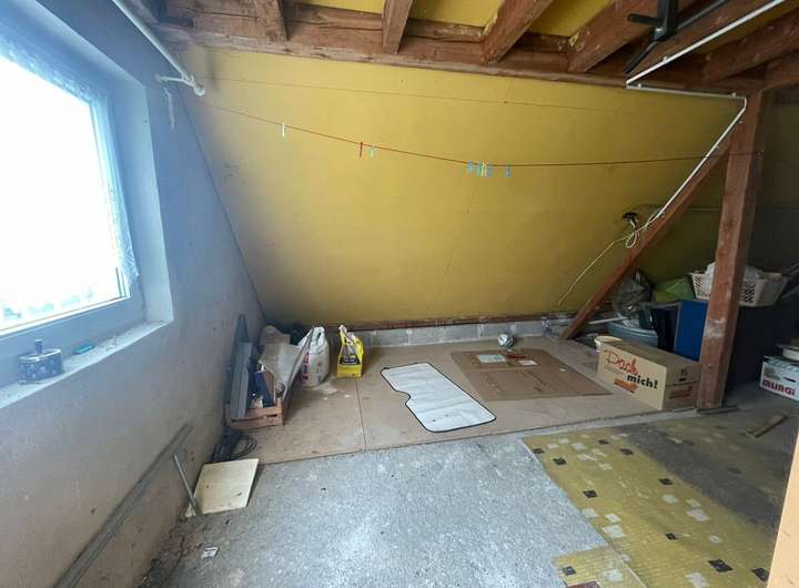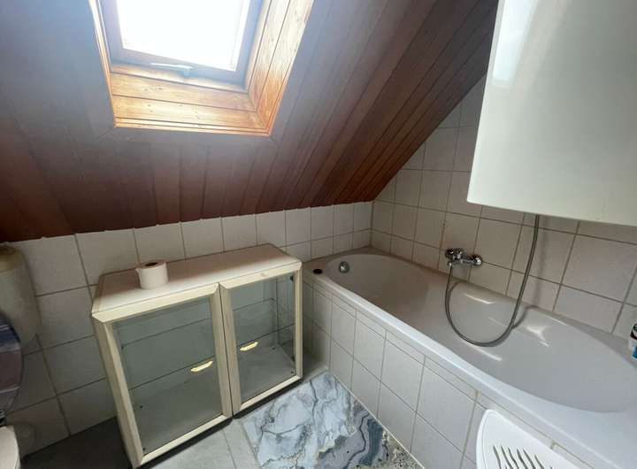 Im Obergeschoss befindet sich eine 3-Zimmer-Mietwohnung mit ca. 75 m² Wohnfläche und Einbauküche, Speisekammer, Balkon, Badezimmer & Gäste-WC. Das Dachgeschoss bietet eine separate Mietwohnung mit ca. 30 m² Wohnfläche und bestehend aus einem Wohn- und Esszimmer mit offener Einbauküche, Tageslichtbad und Flur.