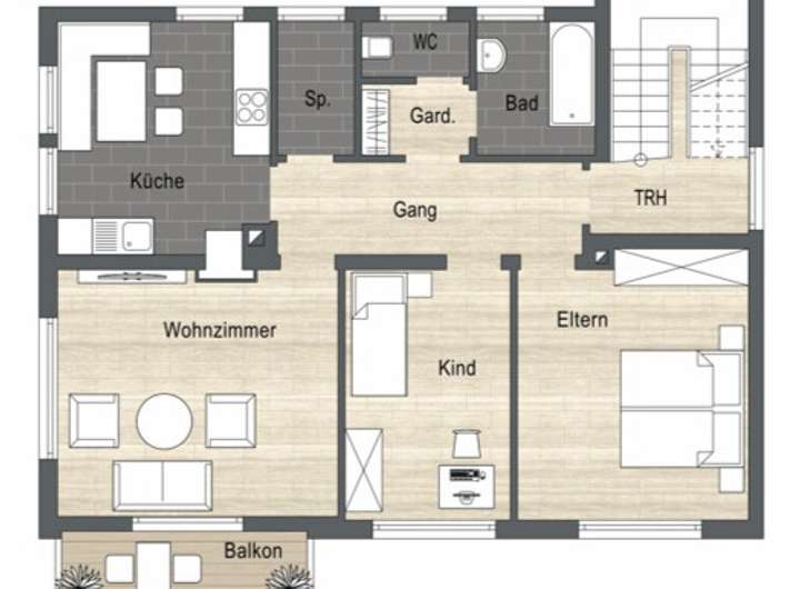 Mit insgesamt 4 Zimmern, 2 Badezimmern und einem praktischen Gäste-WC, bieten diese Wohnungen genügend Raum für Familien und Paare, die Wert auf Komfort und Stil legen. Die große Einbauküche lädt zum gemeinsamen Kochen und Beisammensein ein, während der Balkon das perfekte Plätzchen für entspannte Stunden im Freien bietet.