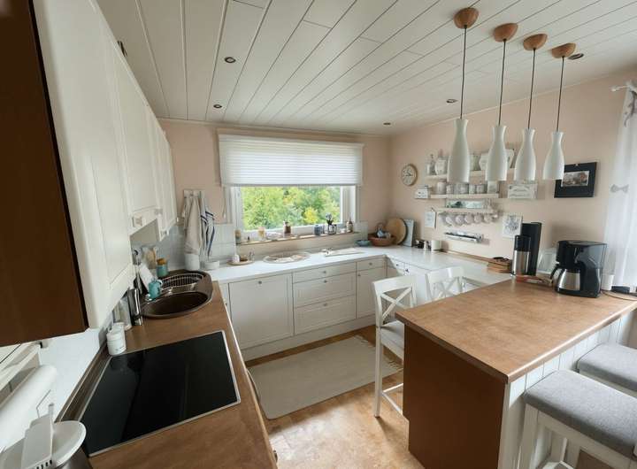 Die Ausstattung ist funktional und praktisch, mit einer Mischung aus Fliesen, Laminat und Parkett als Bodenbelag. Ein besonderes Highlight ist der Kamin im Wohnzimmer, der für gemütliche Abende sorgt. Der Wintergarten bietet einen wunderbaren Ausblick auf den eigenen Garten und lädt zum Entspannen ein.