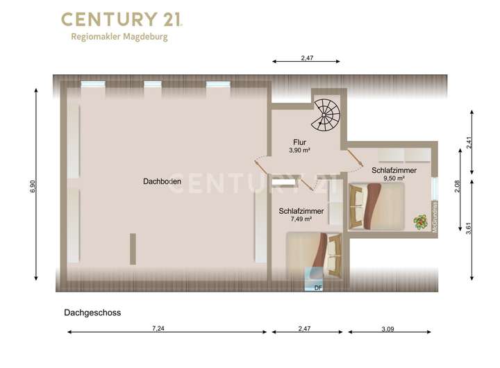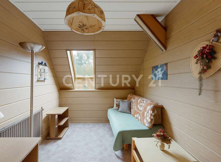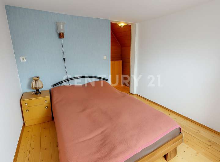 Über eine Wendeltreppe führt der Weg ins Dachgeschoss, wo zwei weitere Schlafräume sowie ein großzügiger Dachbodenbereich warten. Diese Etage überzeugt durch ihre ruhige, private Atmosphäre und bietet vielfältige Möglichkeiten – vom Kinder- und Jugendbereich bis zum kreativen Arbeits- oder Gästedomizil. Der offene Dachboden schafft zusätzlichen Stauraum oder Potenzial für einen zukünftigen Ausbau.