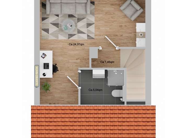 Das ausgebaute Dachgeschoss mit separiertem Duschbad bietet genügend Platz für Ihre Gäste.