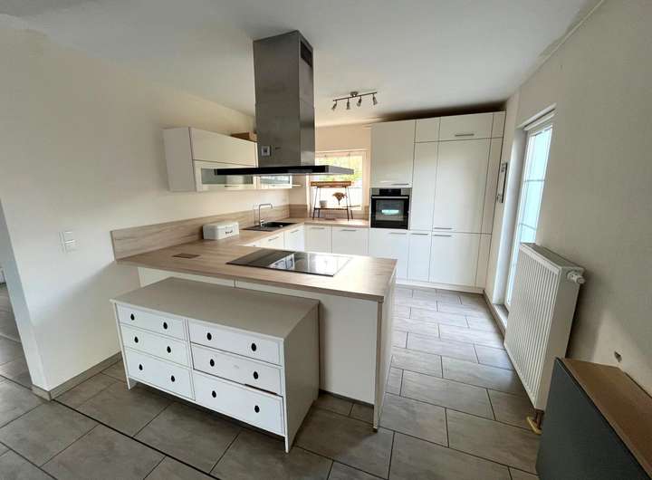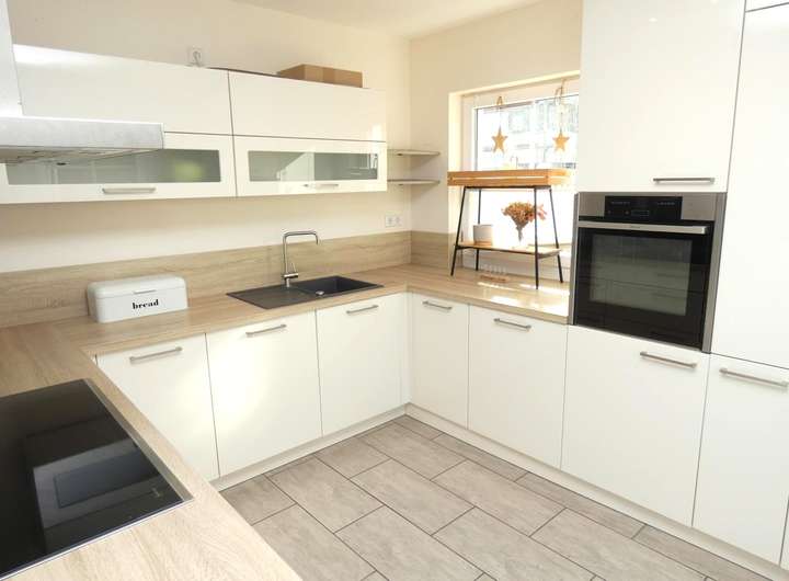 Im Erdgeschoss erwartet Sie ein großzügiger, lichtdurchfluteter Wohn- und Essbereich, der durch seine offene Gestaltung ein angenehmes Wohngefühl vermittelt. Von hier aus gelangen Sie direkt auf die sonnige Süd-West-Terrasse und in den großen Garten, der zum Entspannen und Verweilen einlädt. Die moderne, hochwertige Einbauküche ist bereits im Kaufpreis enthalten und fügt sich harmonisch in das Gesamtbild ein. Ergänzt wird das Erdgeschoss durch ein Gäste-WC mit Fenster sowie einen praktischen Hauswirtschafts- bzw. Technikraum, der zusätzlichen Stauraum und Platz für die Haustechnik bietet.