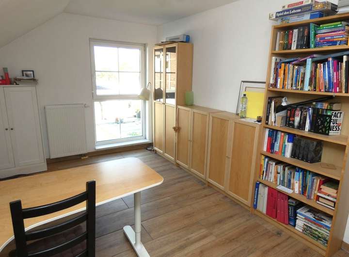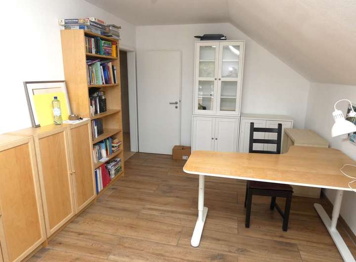 Das Obergeschoss beherbergt drei gut geschnittene Schlafzimmer, die sich ideal als Elternschlafzimmer, Kinderzimmer oder Büro nutzen lassen. Das Tageslichtbad ist modern ausgestattet und verfügt sowohl über eine Badewanne als auch über eine separate Dusche. Die verwendeten Bodenbeläge aus Laminat, Vinyl, Fliesen, Estrich und Echtholzdielen schaffen eine warme und gleichzeitig pflegeleichte Wohnatmosphäre.