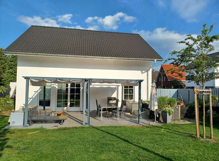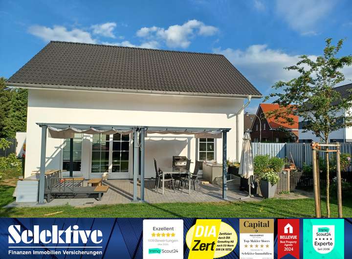 Dieses moderne Einfamilienhaus in ruhiger Lage von Neukirchen-Vluyn, im Ortsteil Neukirchen, bietet ein ideales Zuhause für Familien oder Paare, die Wert auf Komfort, Energieeffizienz und eine angenehme Wohnatmosphäre legen. Das im Jahr 2016 erbaute KfW-Effizienzfertighaus befindet sich in einem neuwertigen Zustand. Lediglich kleine Schönheitsarbeiten sind noch zu erledigen. Auf einer Wohnfläche von rund 114 m² und einem Grundstück von 499 m² überzeugt die Immobilie durch eine durchdachte Raumaufteilung und gute Ausstattung und eine großzügige Außenanlage.
