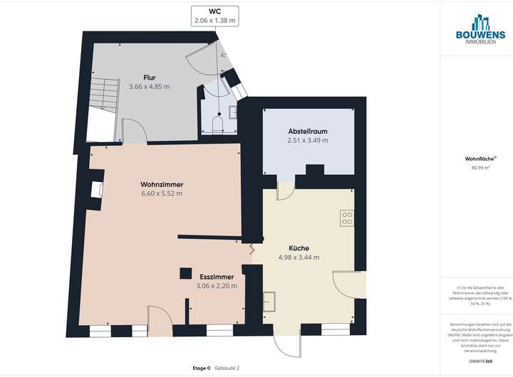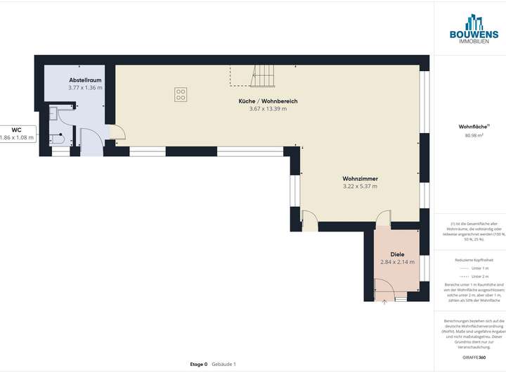 EG: Diele, Wohnzimmer, Küche/ Wohnbereich, Abstellraum, WC