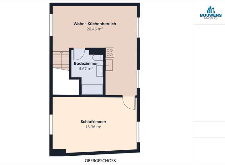 OG: Wohn-Küchenbereich, Badezimmer, Schlafzimmer