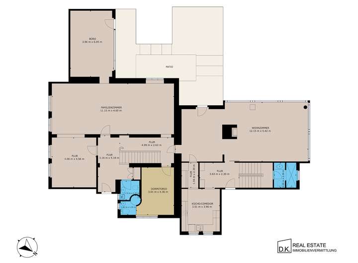 • Zwei separate Zugänge – ideal für Mehrgenerationennutzung oder repräsentatives Arbeiten im eigenen Haus