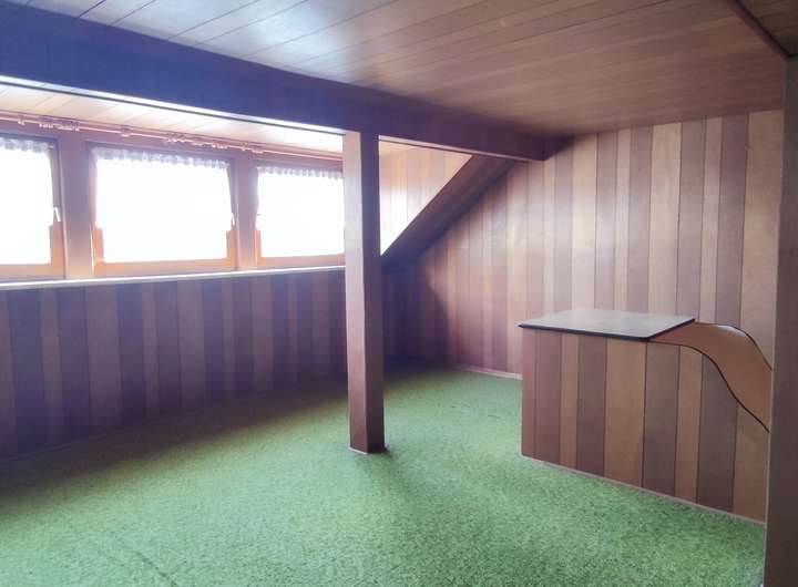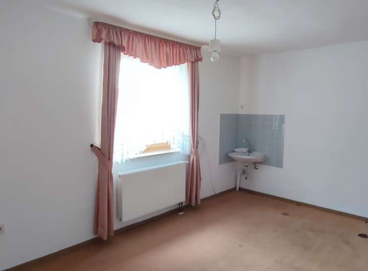 Das Haus verfügt über insgesamt vier Zimmer, darunter zwei Schlafzimmer und ein Badezimmer. Die Räumlichkeiten sind hell und bieten ausreichend Platz für eine kleine Familie. Die Terrasse lädt zum Verweilen im Freien ein und der Keller bietet zusätzlichen Stauraum.