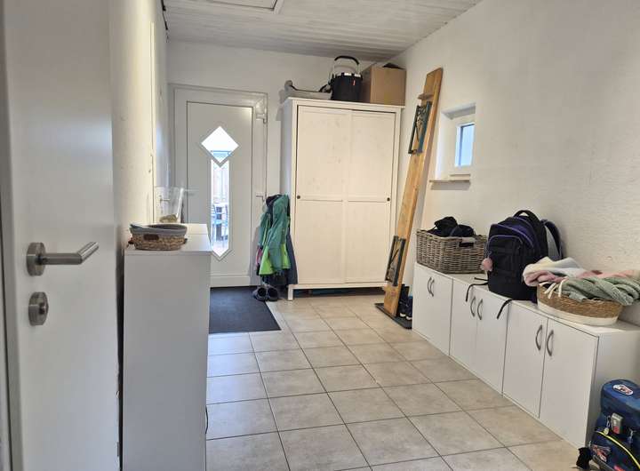 Vom Flur aus habt ihr einen Zugang zum Dachboden, der als Abstellfläche für Deko und Koffer genutzt werden kann.