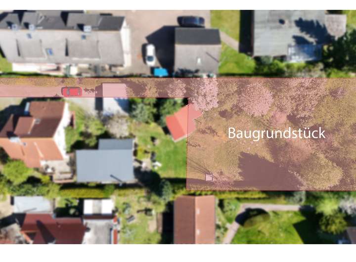 Das Grundstück wird aktuell geteilt und wird nach der Vermessung eine Fläche von ca. 803 m² haben. Die Zufahrt, die mit zum Grundstück gehört, ist 3,50 m breit und gewährleistet komfortablen Zugang.