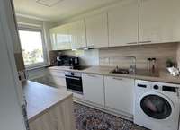 Vinylboden; Die Küche ist mit folgenden Geräten: Kühlschrank, Geschirrspüller ausgestattet.