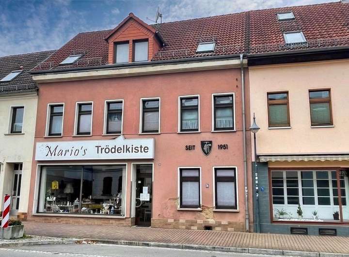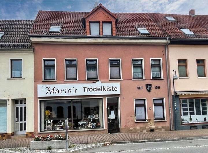 Das um 1900 erbaute Reihenmittelhaus mit PKW-Zufahrt, inklusive zweier Garagen, befindet sich fast im Herzen der Großen Kreisstadt Werdau. Das Erdgeschoss ist derzeit noch einen Händler für beliebte Trödelwaren vermietet, eine Eigennutzung ist jedoch ach möglich.