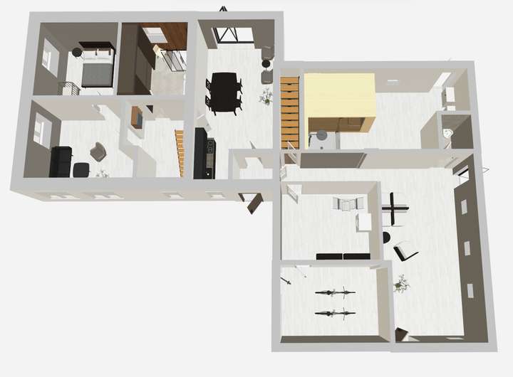 Das Gebäude ist in 2 eigenständige Wohneinheiten aufgeteilt, die jeweils für sich ein vollwertiges Zuhause bilden. Beide Bereiche verfügen über eigene Eingänge und bieten damit Komfort, Privatsphäre und flexible Nutzungsmöglichkeiten – ideal für Mehrgenerationenwohnen, Ferienvermietung oder die Kombination von Wohnen und Arbeiten unter einem Dach. Natürlich ist auch eine Alleinnutzung möglich.