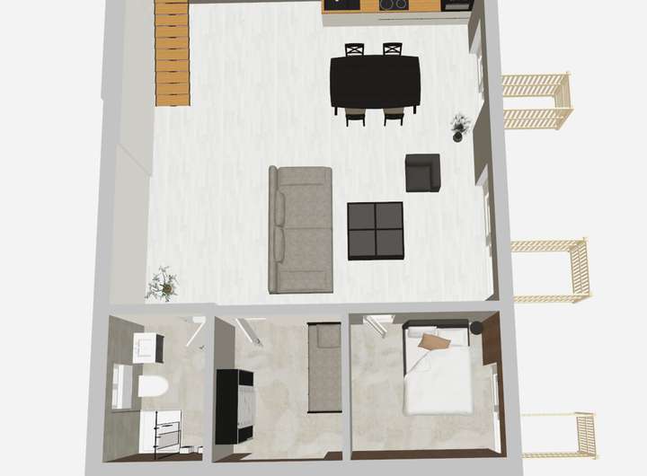 Visualisierung und können von der tatsächlichen Ausstattung oder Gestaltung abweichen. Maßangaben, Grundrisse und Ausstattungsmerkmale sind unverbindlich – maßgeblich sind die Angaben in den Objektunterlagen.