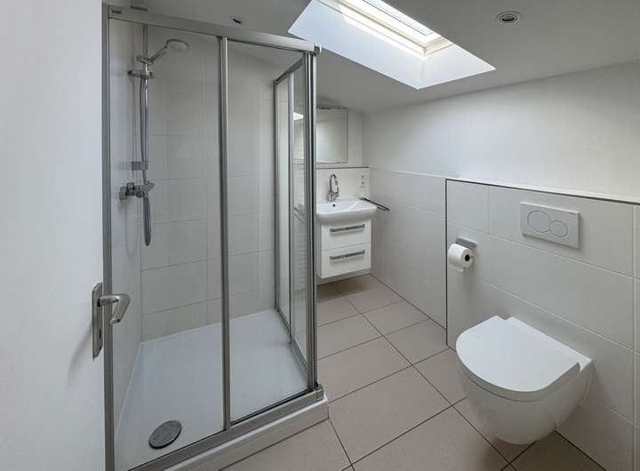 Zwei Schlafräume befinden sich in dem oberen Stockwerk. Insgesamt stehen Ihnen drei Schlafzimmer zur Verfügung, die alle großzügig geschnitten sind und genügend Platz für individuelle Einrichtungsideen bieten. Zwei modernisierte Badezimmer sorgen für Komfort und Bequemlichkeit. Hier wurden im Rahmen der letzten Modernisierungen im Jahr 2022 hochwertige Materialien und zeitgemäße Installationen eingebaut. Ein großer Bodenraum im Obergeschoss bietet zusätzlichen Stauraum.