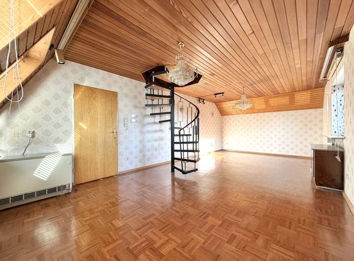 - Spitzboden (über eine Wendeltreppe erreichbar): zwei Hobbyräume