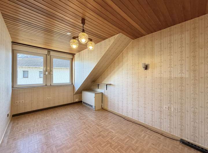 - Dachgeschoss: Flur mit Abstellnische, Kinderzimmer, Kinder-/Arbeitszimmer, Badezimmer, Küche, Wohnzimmer