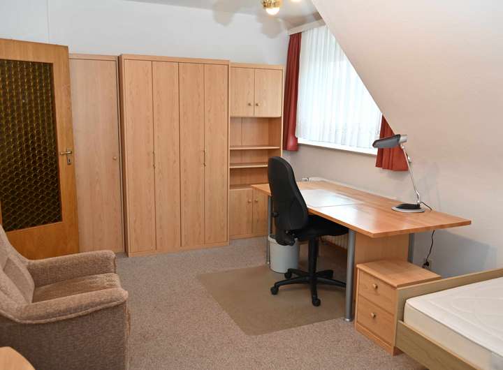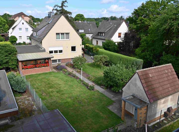 Bei dem Objekt handelt es sich im Ursprung um ein freistehendes, unterkellertes Einfamilienhaus mit Einliegerwohnung aus dem Baujahr 1957 mit Satteldach. Im Jahr 1969 wurde ein unterkellerter Anbau mit Flachdach errichtet der aus einen Esszimmer und einen Zimmer zur Erweiterung des Wohnzimmers in Hochparterre und einen Balkon für die Wohneinheit in der ersten Etage bestand. 1977 erfolgte eine Aufstockung des Anbaus mit einem Satteldach zur Schaffung eines weiteren Zimmers in der ersten Etage. Außerdem wurden insgesamt 14 Gaubenfenster in der ersten Etage ins Dach eingebaut. Zeitgleich wurde eine große Garage mit isoliertem Flachdach zwischen Haus und der rechten Nachbargrenze errichtet. Alle Gebäudeteile sind in Massivbau erstellt.