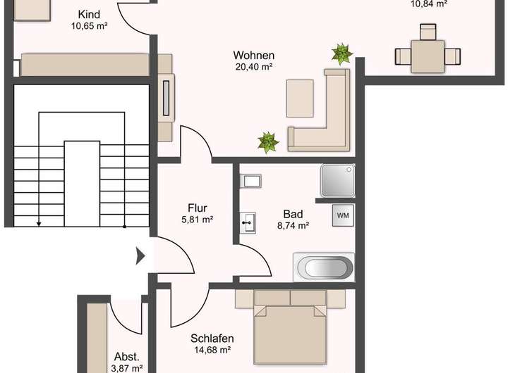 - ein Abstellraum innen + separater Außenabstellraum außen