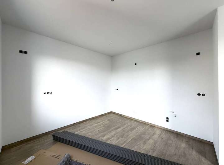 - Schlaf- und Wohnbereich: Vinylfußbodenbeläge in grau-brauner Holzoptik