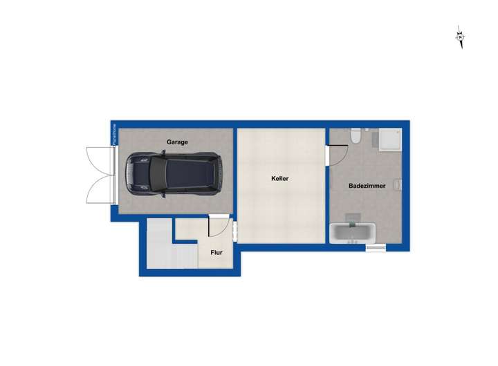 Das Badezimmer ist im Kellergeschoss untergebracht. Hier befinden sich auch weitere Abstellmöglichkeiten. Zum Haus gehört außerdem eine Garage, die den Komfort abrundet.