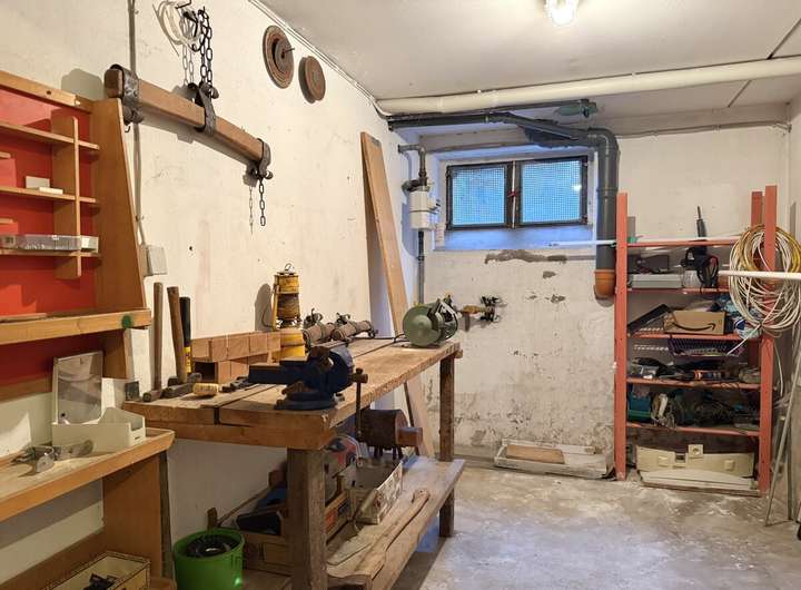 Das Kellergeschoss ist vollunterkellert und bietet neben einer Waschküche eine Heimwerkerwerkstatt sowie viel Stauraum. Der Keller ist sowohl vom Treppenhaus im Erdgeschoss als auch durch Außentreppe erreichbar.