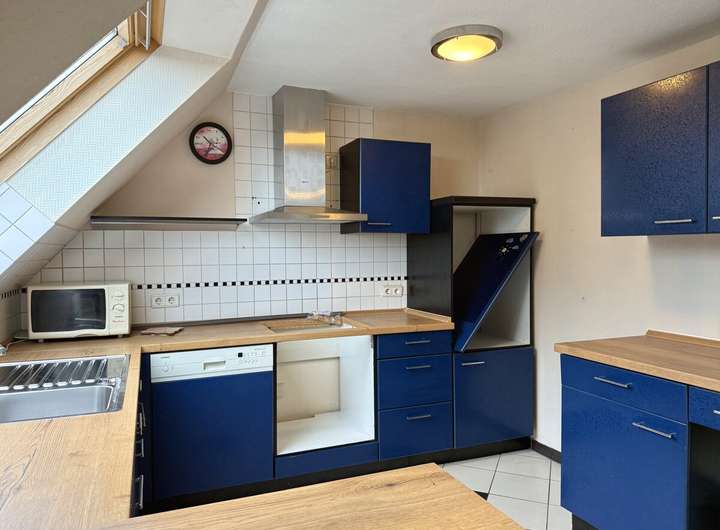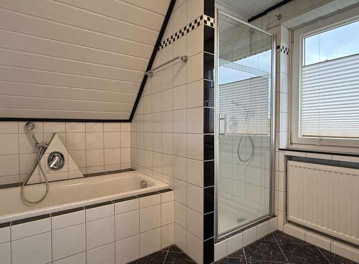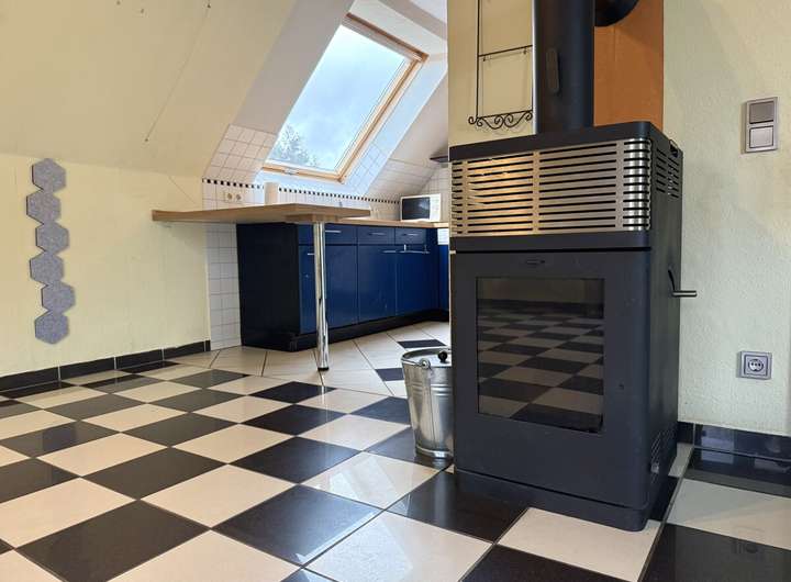 Das Dachgeschoss wurde nachträglich umgenutzt und beherbergt einen großen Wohn-/Essbereich mit Ofen und offener Wohnküche, zwei Schlafzimmer, ein Badezimmer mit Badewanne und Dusche.
