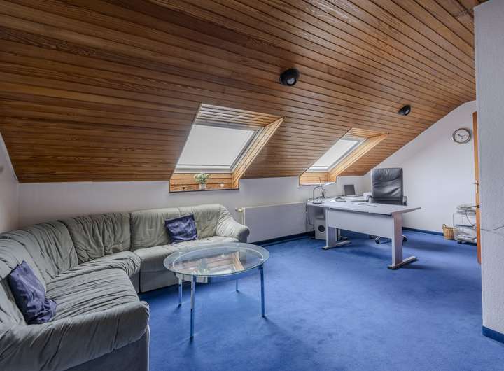 Das teilweise ausgebaute Dachgeschoss schafft zusätzlichen Raum – ob als Hobbybereich, Homeoffice oder Rückzugsort für Gäste. Im Kellergeschoss stehen Ihnen weitere Stau- und Nutzflächen zur Verfügung, ideal für Hauswirtschaft, Lager oder Freizeitaktivitäten.