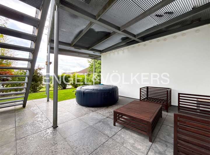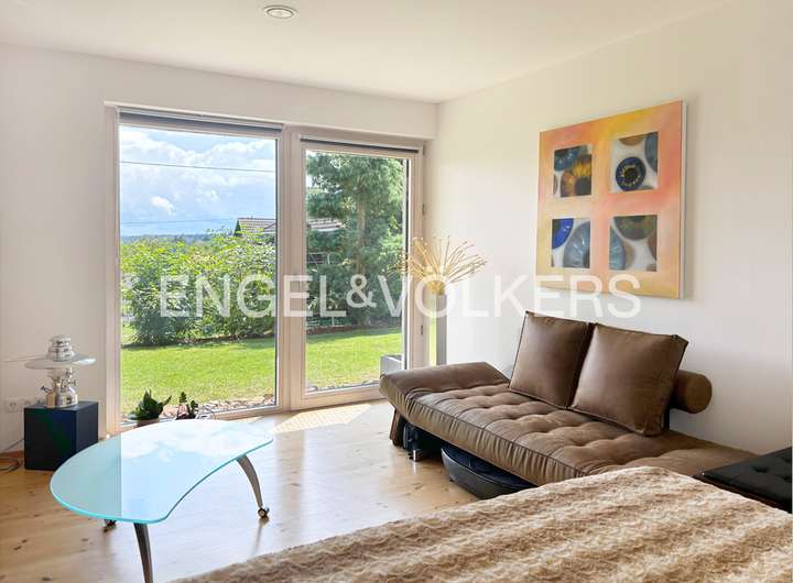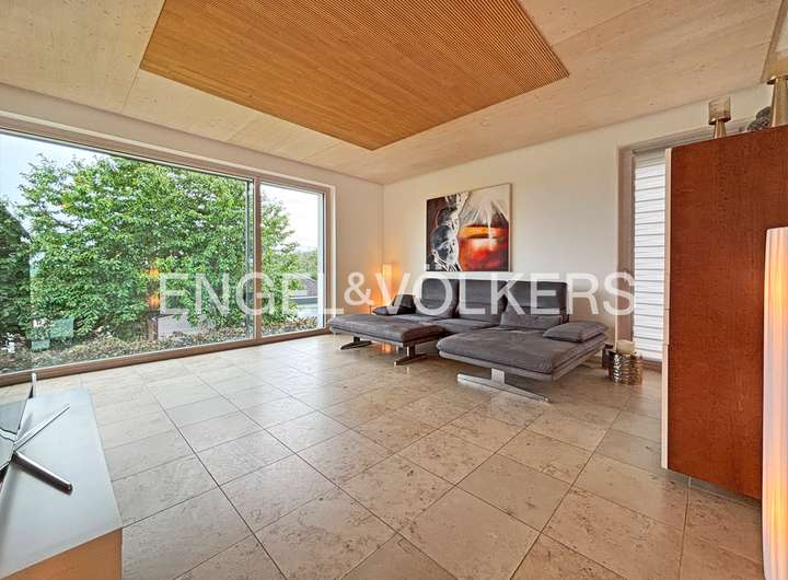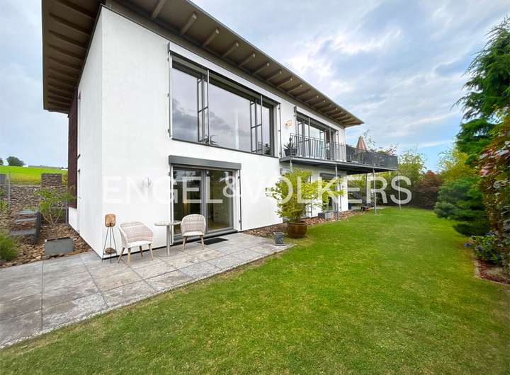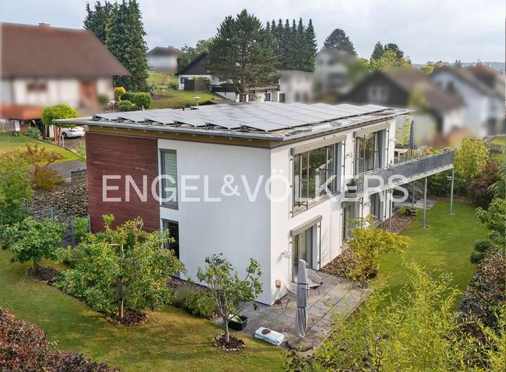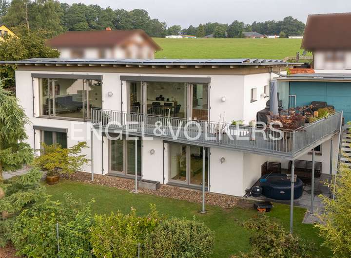 Im Jahre 2007 entstand dieses zukunftsweisende Einfamilienhaus im Cubus-Style; 2009 wurde die Immobilie mit dem "Golden Cube" ausgezeichnet. Das Haus wurde in Holztafelbauweise (Passivhaus) errichtet. Besonderes Highlight ist die offene, lichte Raumaufteilung mit großen Fensterflächen, die hochwertige Innenausstattung und die großzügige Balkonanlage mit Fernblick.